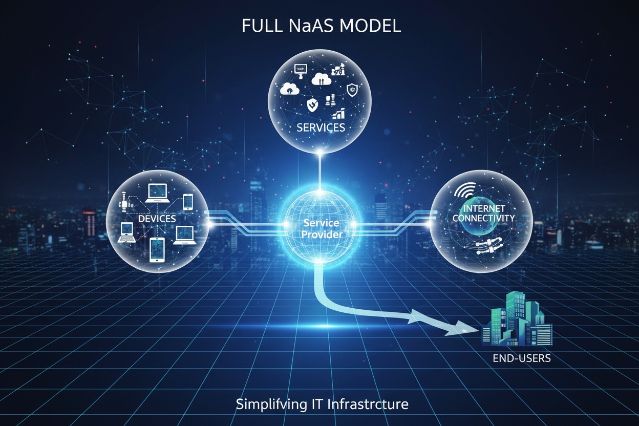 Full NaaS delivers a complete connectivity platform where both networking infrastructure and internet connectivity are fully managed.